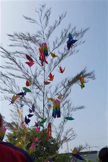 笹竹に平和への願いを込めた千羽鶴 |