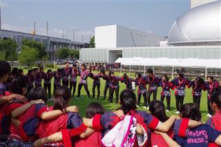 円陣を組んで気持ちを1つに |