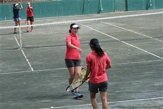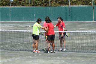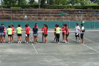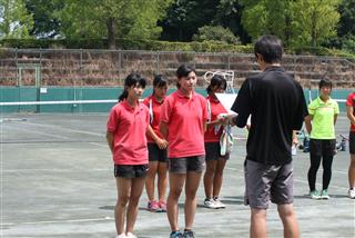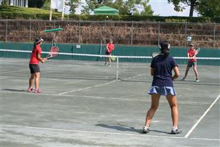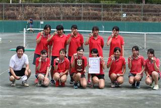 8月4日(木)、口論義公園テニス場で硬式テニス部女子が市内県立大会団体決勝戦に臨んだ。相手は強豪愛知商業高校。 ダブルス3ペアが3面のコートを同時に使用してのゲームスタート。第1ペアは1−6ゲームで敗戦。第2ペアは3−5まで追い込まれるが、驚異的な粘りで7−5とひっくり返し勝利。第3ペアは追いつ追われつのシーソーゲーム。とうとうタイブレークとなる。ここで勝てば優勝、負ければ準優勝という剣が峰。応援にも一層熱が入る。マッチポイントを何度か凌ぎ、9−7でタイブレーク勝利。優勝だ! おめでとう! 日焼けなんか気にせずに練習を積み重ねた結果だと思う。