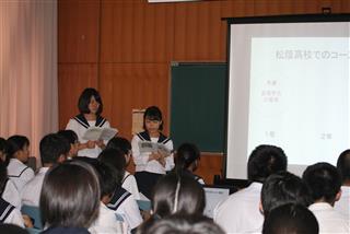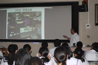 松蔭高校は来年度高校入試から1・2群共通校となることを機に、今年度から中学生の一日体験入学を2回実施することとなった。 8月22日(月)、3年生有志によるパワーポイントを使った学校紹介を7会場で4クール実施。併行して体育館やグラウンド、武道場、教室で運動部・文化部のほとんどの部活が練習風景を中学生や保護者に公開した。