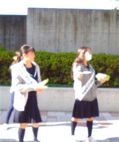 肌寒い中、大きな声で募金の呼びかけをし、たくさんの方々から励ましのお言葉や寄付をしていただきました。松蔭生や卒業生などにもご協力いただき、有り難うございました。