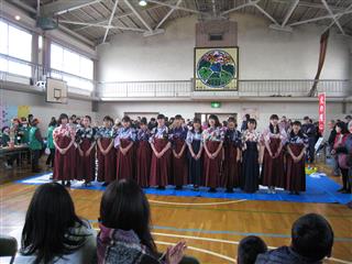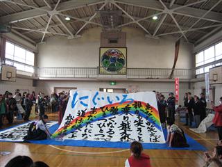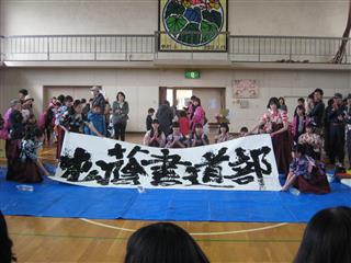 昨年からJRC部は参加していますが、今年は書道部も一緒に参加してきました。 書道部は文化祭で披露したようなパフォーマンスをしたところ、ご覧になった方に「感動した」とのお言葉を頂きました。 また、JRC部は防災ゲーム「なまずの学校」をつかったクイズブースを出しました。小さな子どもたちも参加し、楽しんでくれました。