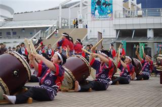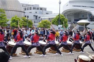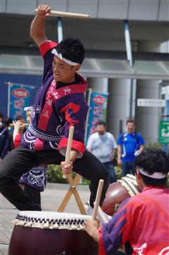 5月3、4日両日名古屋港ジェティGWフェスティバルにて、演奏しました。二日間とも好天に恵まれ、多くのお客様に和太鼓の演奏を楽しんでもらいました。二年生が4チームに分かれて1回ずつ初めて「エンカウンター」披露。ベーシックバージョンの演奏で、まだまだ成長過程ですが、テンポのノリ良く演奏できたと思います。早くフルバージョンがお客様に披露できるといいですね!