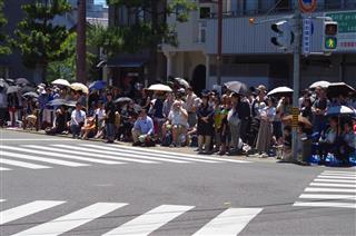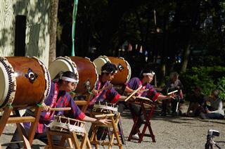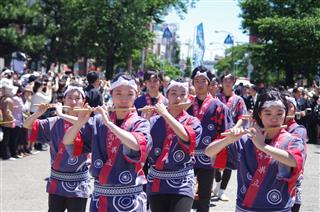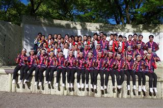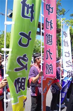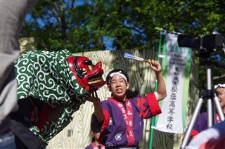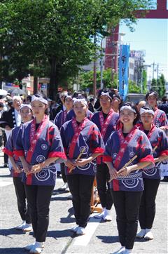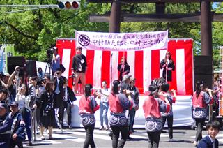 まさに五月晴れの28日、今年一番大きなイベントとも言える「初代中村勘三郎生誕像建立記念お練り」がありました。わが部は、「初代中村勘三郎生誕碑を中村公園に建立する会」の依頼を受け、お練りの先導に加わり、またお練りに加わらない3年生で「祈り」を披露しました。ごった返す交差点の中、演奏開始直後は「何で、こんなところでやるの?」と迷惑そうに思われていたのですが、曲が進むにつれてお客様の気持ちを掴み、最後には大きな拍手を頂きました。除幕式後は、我々の演奏に多くの方に足を留めて頂き、楽しく演奏できました。3万5千人の人出のあったお練り。本当に良い経験をさせて頂きました。