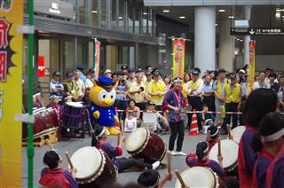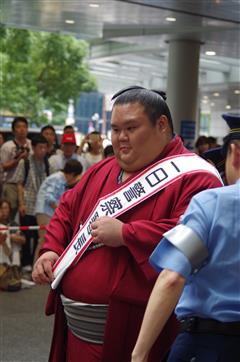 | お客様の呼び込みで一曲披露 | 一日署長の千代丸関 |