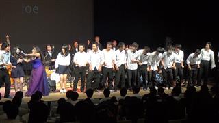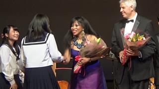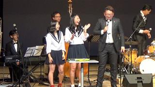 生徒にとっては、あまり馴染みのないジャズの演奏ということで、最初はちょっと身構えがちでしたが、セントラルオーケストラのノリの良い演奏、プリスカさんのパンチのある歌声や軽妙なトークでどんどんステージに取り込まれ、最後は本当にステージに上がってしまう生徒も!