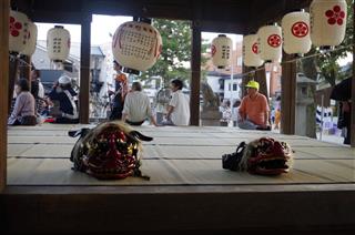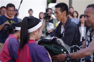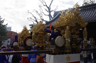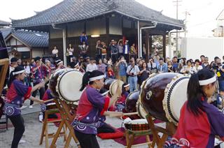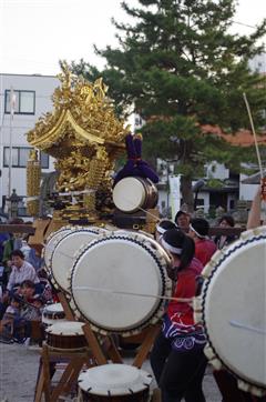![]() 「道行き」では、本物の屋形の 太鼓を打たせてもらいました! |