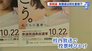 CBCテレビ夕方のニュース番組「イッポウ」の大石アナウンサーが本校を訪れ、3年生19名が18歳選挙について取材を受けました。この番組は、当日(10月13日)のトップニュースで取り上げられ放映されました。大石アナウンサーから「松蔭生の政治への関心は高く、質問に対する回答もレベルが高く素晴らしかった。」とお褒めの言葉をいただきました。 (文責:校長)