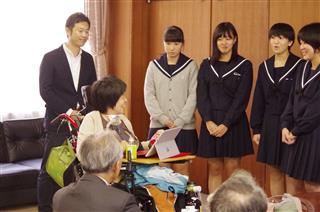 | 女子バスケット部員と顧問が講演後の押富さんを訪問 | |||||||||