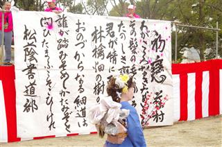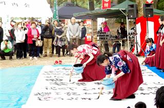 4日(日) 和太鼓の演奏をバックに書道パフォーマンス