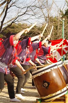 和太鼓部書道部「荒子公園梅祭り」で演奏する!