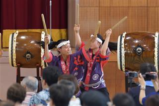 | 1年生演奏の「ぶち合わせ」 | 3年生男子による「天平太鼓」 | ||||||||||