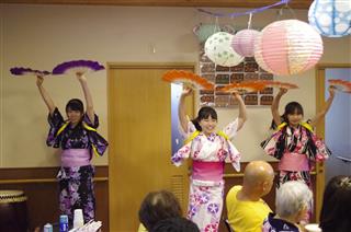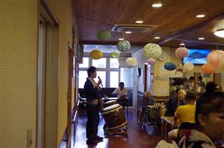 7月22日グループホーム「あかりの家」の夏まつりで、演奏させて頂きました。1F2F同じ演目の二回公演。各階それぞれのお客様に喜んで頂き、美味しい食事を頂き、我々も楽しいひと時を過ごすことができました。