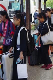 | 全国大会当日。舞台衣装のままバスへ | |||||||||||