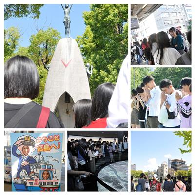 2年生は、10月3日より3日間広島・萩方面の修学旅行に行ってきました。今年は、初日に原爆ドーム・平和記念資料館見学後、宮島散策に出掛けました。生徒達は、厳島神社で御朱印をいただく者やもみじ饅頭,焼き牡蠣を頬張る者などとても楽しそうでした。現地滞在時間をもう少し取ってあげられればと感じましたが、宿泊先に到着した頃はもう日が落ちていました。翌朝は浜辺でビーチフラッグ大会を開催し、大勢の参加者の中、大変盛り上がりました。また優勝者にはホテルから商品が贈られました。2日目以降の天気を心配しましたが、ほんの一瞬のにわか雨程度で予定通りの日程を消化することができました。大きな怪我もなく、全員無事に戻って来ることができ、思い出に残る高校生活の1ページとなりました。