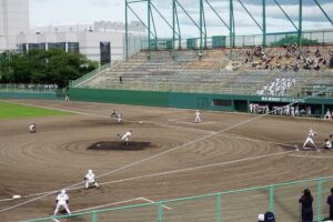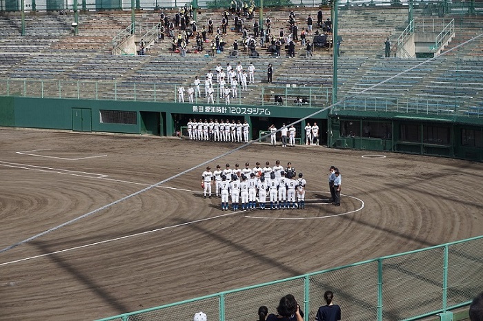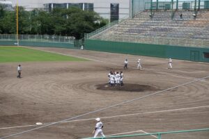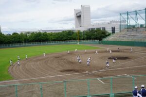 7月12日(日)野球部が夏季愛知県高等学校野球大会に出場しました。会場:熱田愛知時計120スタジアム、対戦相手:名古屋国際高校、プレーボール8時30分。
