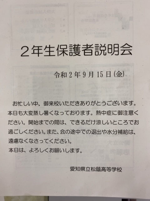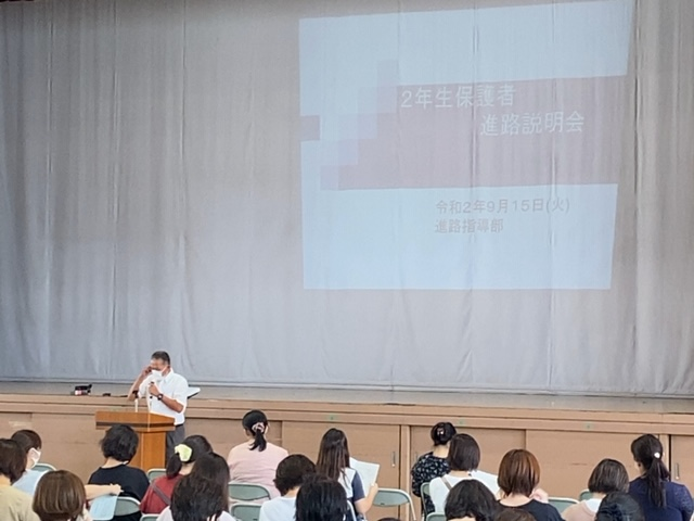 本日午後、2年生を対象に「保護者説明会」を行いました。200名を超す保護者の方々に御参加いただきました。お忙しい中お越しいただき、ありがとうございました。
