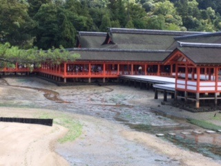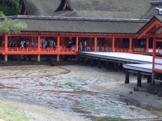 広島に到着したときは雲が広がっていましたが、雲も取れて青空が広がってきました。平和公園の原爆ドームをあとにして宮島に向かいました。厳島神社の大鳥居は工事が続いていて、全貌を見ることができませんが、島内にも見どころはたくさんあります。ご当地「もみじ饅頭」の出来立ては生徒にも大人気です。2時間ほど散策をし、その後、宿泊地である萩市に向かいます。