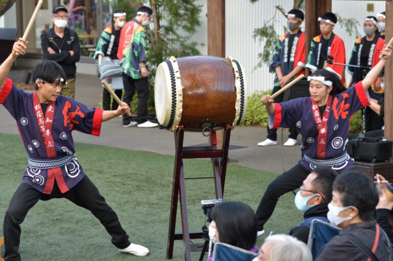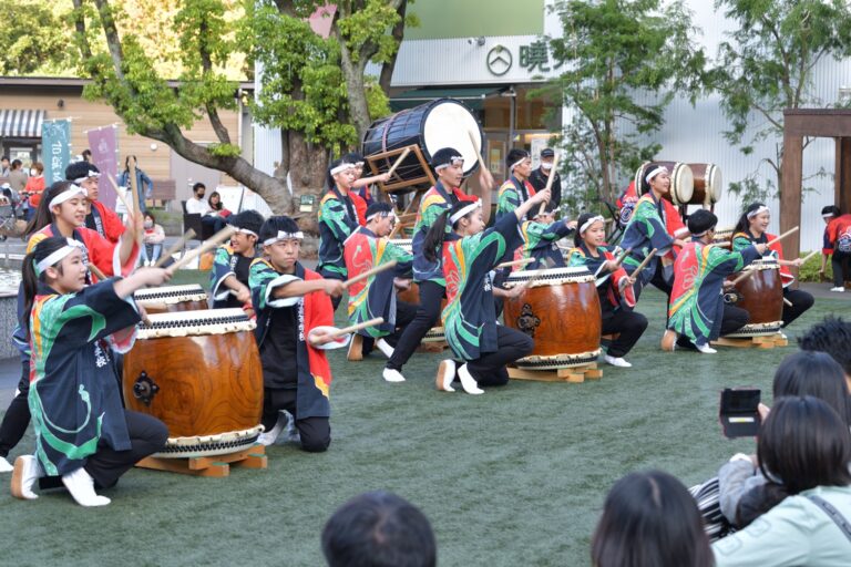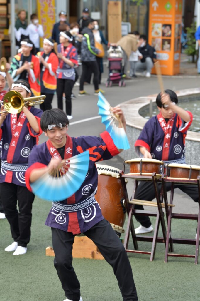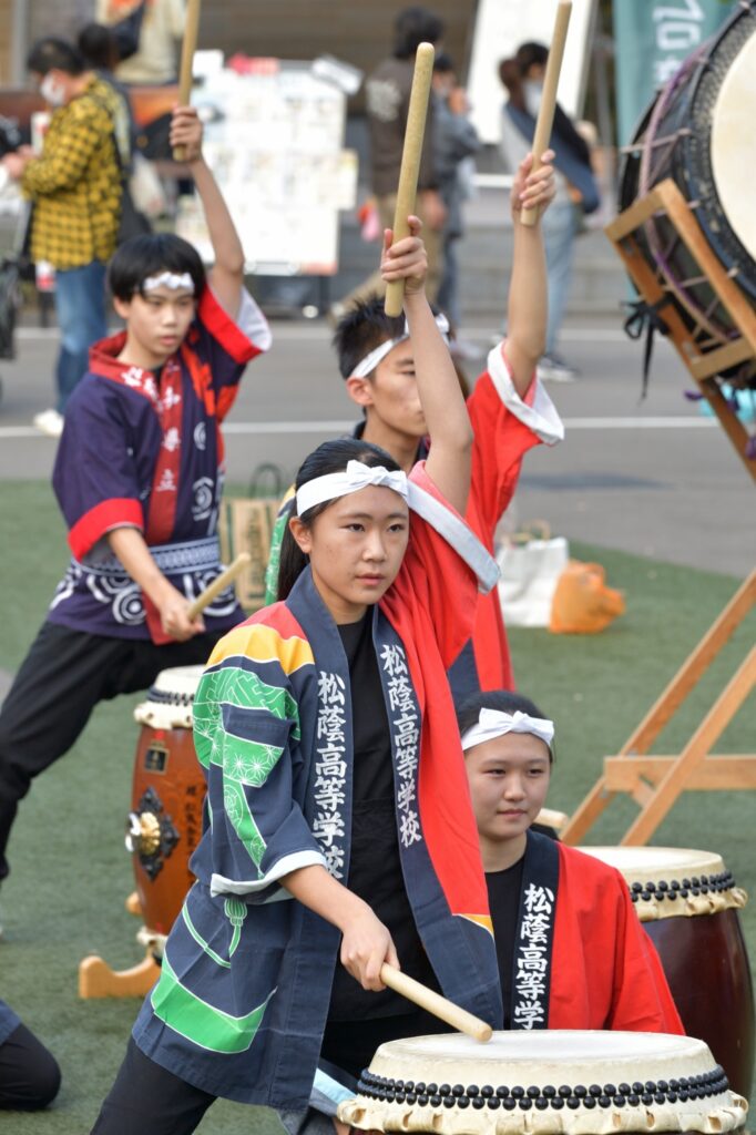 Newsletter 2020 Vol.17-39 和太鼓部校外活動 少しずつ始めています 2020年10月22日 和太鼓部は、10月18日(日)、メーカーズピアからのお招きを受け、1時からと3時からの二回公演を開催しました。お天気に恵まれ、多くのお客様とともに、和太鼓の演奏を楽しみました。