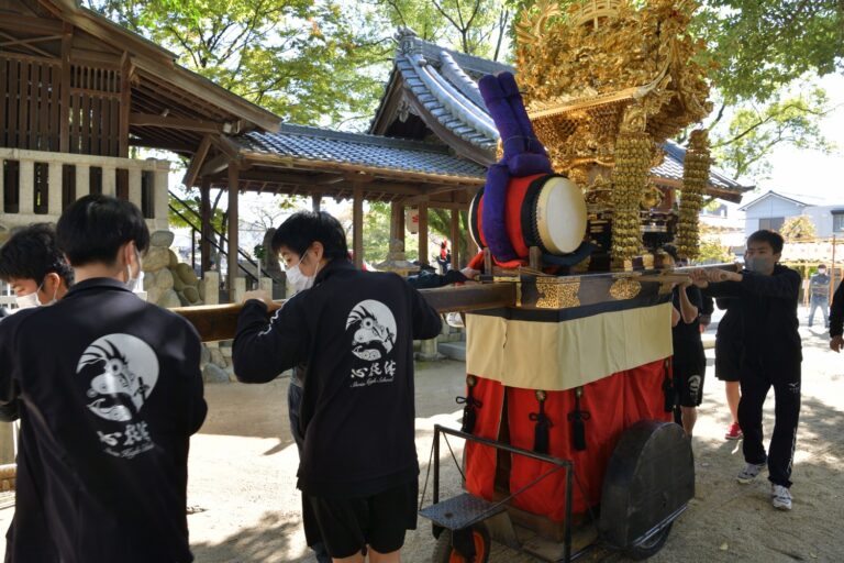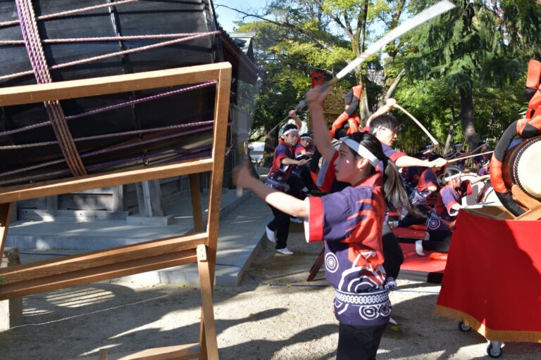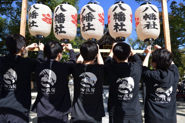 京都府文化庁が主催する「全国高校生伝統文化フェスティバル」は、全国大会で入賞した経験のある高校のみが出演できる格式の高いフェスティバルですが、今回わが松蔭高校和太鼓部に出演依頼が来ました。京都で「祈り」を演奏できると喜んでいましたが、残念なことに、このコロナ禍により、全国大会同様リモート開催となりました。プロのカメラマンが、「祈り」を録画されるということで、それならばリモートでしか出来ない動画を撮ってもらおうと、「祈り」の作品舞台である烏森八幡社でロケを敢行。そして烏森八幡社の皆様の全面的なバックアップを頂き、お祭りにしかお披露目しない豪華な山車を使っての演奏となりました。このような状況でない限り考えられない烏森八幡社における山車を使った演奏。きっと素晴らしい動画になると思います。京都伝フェスが本当に楽しみです。