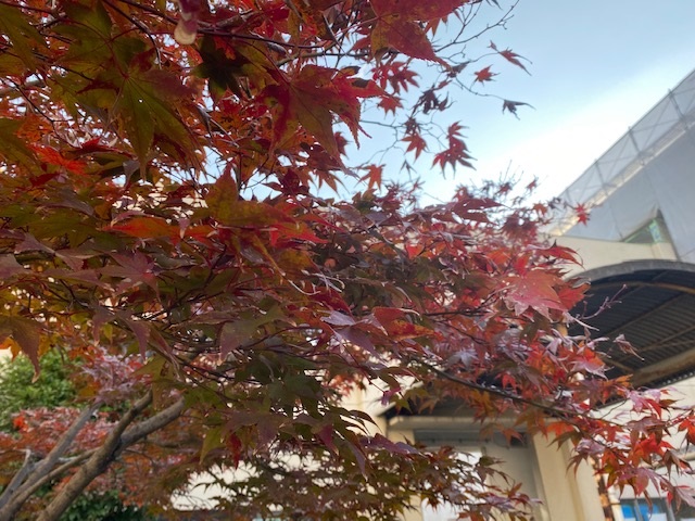 Newsletter 2020 Vol.17-45 松蔭高校の秋も深まってきています 2020年11月16日 昼間は暖かくても、朝夕、少し気温が低い日が増えてきたように思います。紅葉の名所では、あちこちから見ごろの便りが届いていますが、本校にも紅葉の便りが届きつつあります。 体育館南側にあるサクラの木 1号館南側のモミジ これからますます秋が深まっていきます。