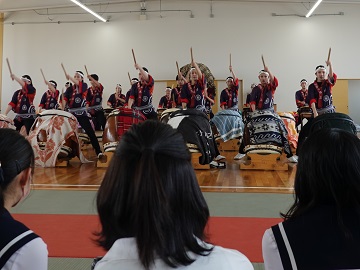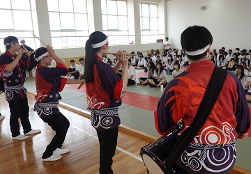7月20日(火)終業式のこの日、和太鼓部が本校生徒を対象にミニコンサートを武道場で披露してくれました。