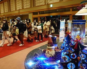 宿の千春楽さんのロビーには、大きなツリーと小さなサンタが待っていました。そういえば、最終日はイブでしたね。いろんな意味で思い出に残る修学旅行になりました。