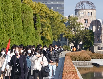2年生が、12月22日から2泊3日の行程で、広島と山口県の萩方面へ修学旅行に行ってきました。当初9月末に予定されていましたが、コロナの影響で2学期の最後になりました。しかし、奇跡的な好天に恵まれ、生徒たちは思いっきり仲間たちと楽しんできたようです。