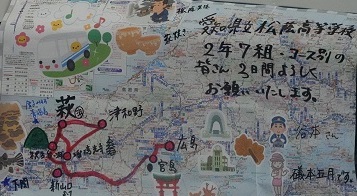 上は、広島バスのガイドさんが、バスの車内に初日から貼っくれてた自作の行程案内です。新山口駅でお別れの際、「松蔭の生徒さんは、皆かわいくて素敵です。また、広島に来てください!」と、私にそっと声をかけてくれました。皆さんの家族も含めて多くの人にお世話になった修学旅行でしたが、感謝の気持ちと楽しかった思い出をいつまでも胸に焼き付けておいてくださいね。(校長)