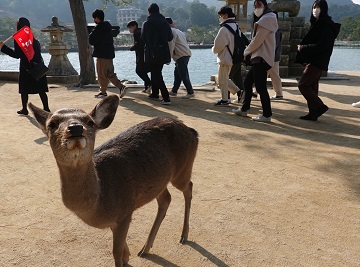次に向かったのは宮島は厳島神社。あいにく大鳥居は改修工事中でしたが、愛嬌のある野生のシカたちが出迎えてくれました。シーズン中とは違って、焼き牡蠣も揚げもみじ饅頭もあまり並ばずにゲットできたみたいですね。さて、お腹を満たしたら一路今宵の宿のある山口県は萩市に向かいます。