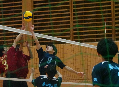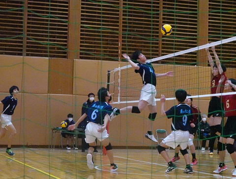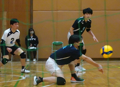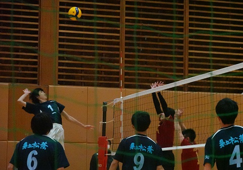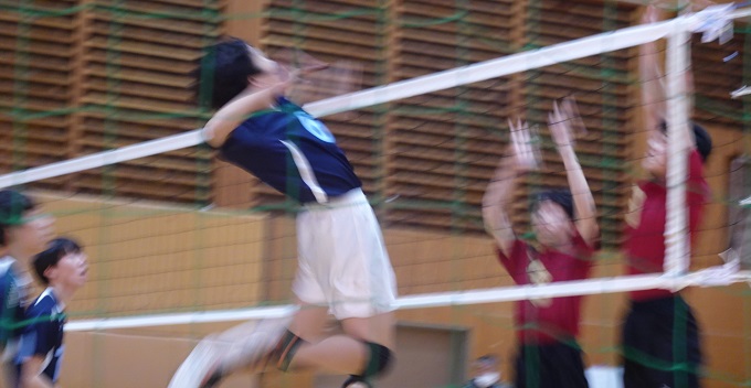 以下の画像は、本校会場で行われた男子バレー部の第一試合の様子です。
