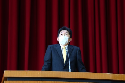 引き続き、同窓会会長の星野様、会長代理の高橋様ご臨席のもと、第74回同窓会入会式を行いました。初めに卒業生を代表して東さんから挨拶があり、その後、星野会長から暖かい祝辞をいただきました。祝辞の中で、「マスコミをはじめとする世の中にあふれる情報には、真実とは異なるベクトルが働いていることもある。そうした危うい情報もあることを踏まえて、自分自身の目で俯瞰して見るというか、広い視野で全体を把握しようとする姿勢を大切にしてほしい」というお話が印象に残りました。