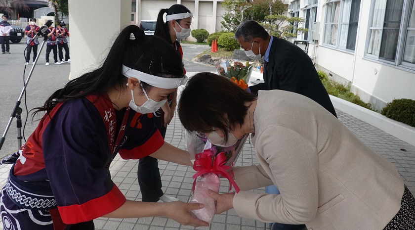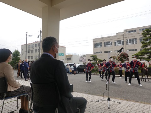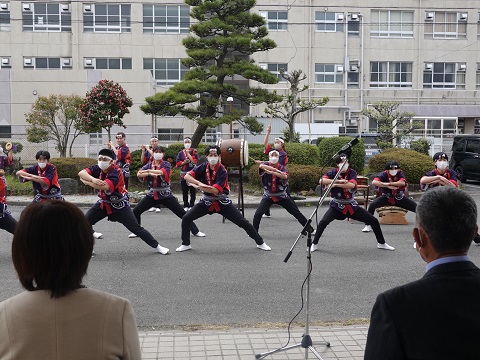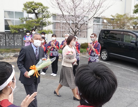 本日をもって本校をご退職される先生方を、和太鼓部員たちの演武「南中ソーラン」で送り出す会を行いました。これは何年も続いていて、毎年3月31日の恒例行事となっており、県外の大学に通っているOB・OGたちも駆けつけてくれました。ご退職される先生方の踏み出す新しい一歩が素晴らしいものであることをお祈り申し上げます。