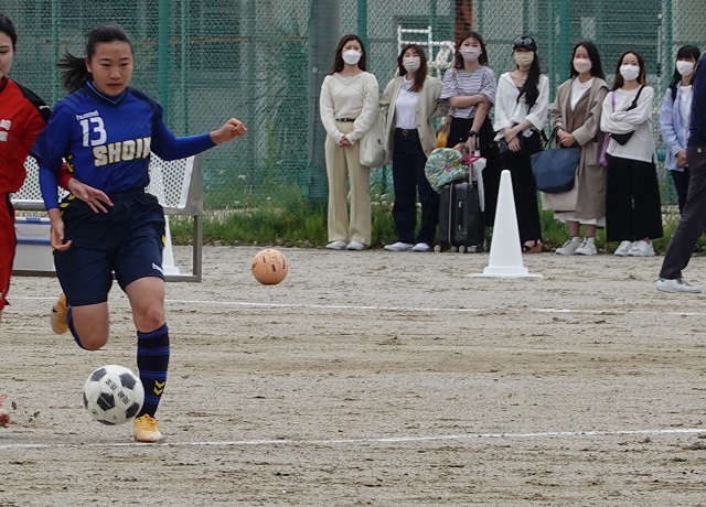 5月15日(日)女子サッカー部が総体の3回戦に挑みました。シードがあるため、実質は今大会初戦となるので何が起こるかわからない不安も過りますが、卒業したOGの皆も応援に駆け付けてくれ、会場も松蔭高校のグラウンドであったためか、選手たちも前半から落ち着いてプレーしているように見えました。