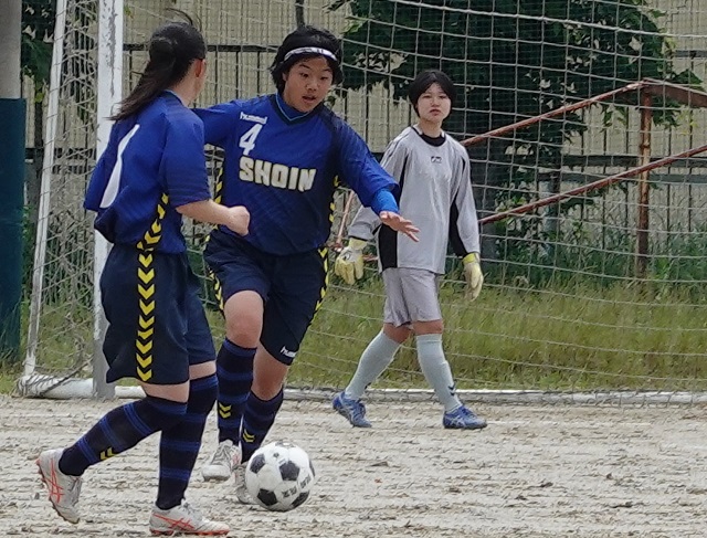 この春卒業した先輩の他、総体がコロナで中止になり、悔しい思いで引退していった先輩たちも来てくれていましたが、今日は堂々と勝利を勝ち取る姿を見せることができました。準々決勝は来週末の土曜日、同朋高との一戦が待っています。笑顔で頑張れ、松蔭女子サッカー部!(校長)
