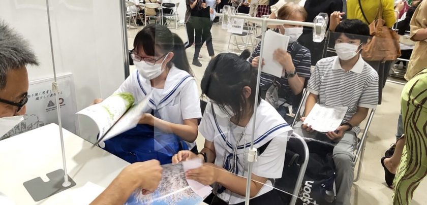 8月6日(土)県立高校進学フェアが名古屋市の吹上ホール第1ファッション展示場で開催され、本校の質問ブースにも、多くの中学生の皆さんに訪れていただきました。中村区、中川区や港区など近隣のほか、東海市や津島市、一宮市からも保護者の方と一緒にご来場していただきありがとうございました。中には、午前中の部活の大会を終えたその足で直行してきていただいた方もあり感謝申し上げます。また、中2生や中1生の皆さんも多く、その場で熱心にメモを取っていただいている姿にこちらも説明に思わず熱が入る思いでした。質問の多くは、学校の雰囲気や部活動についての内容が多かったと思います。入学者選抜については現段階ではお話しできることが少なく申し訳ありませんでしたが、一般入試で面接検査をなくした理由などの質問もあり、私にとっても、新しい選抜制度について皆さんの関心の高さを強く感じる機会になりました。(校長)