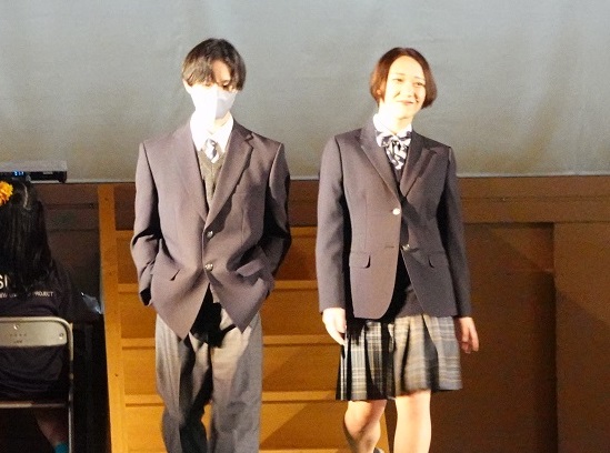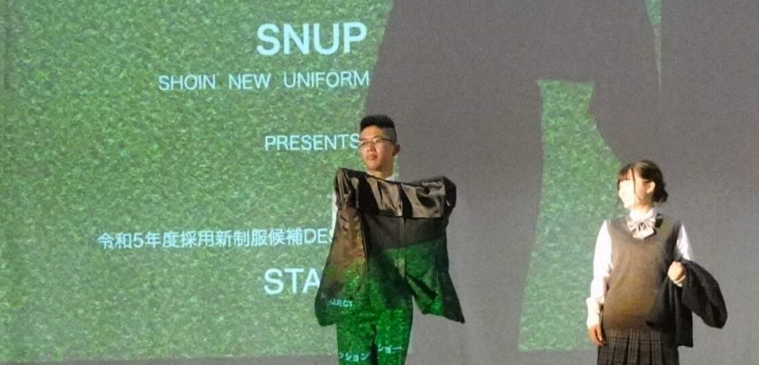 令和4年9月9日(金)、文化祭の最後に体育館で、SNUP(Shioin New Uniform Project)による、新制服候補の発表会が行われました。