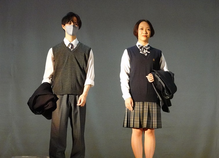SNUPのメンバーから選ばれた男女8人が、それぞれ冬服(濃いグリーンを基調したタイプのブレザーと紺を基調としたタイプのブレザー)、夏服(白のポロシャツタイプと紺のポロシャツタイプ)の装いで、さながらファッションショーの雰囲気でのパフォーマンスとなりました。(注:写真では照明の関係で正確な色合いが再現できていません)