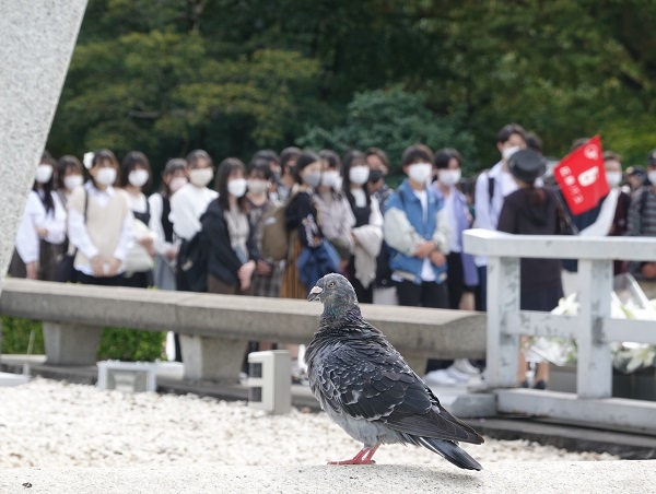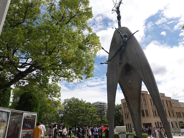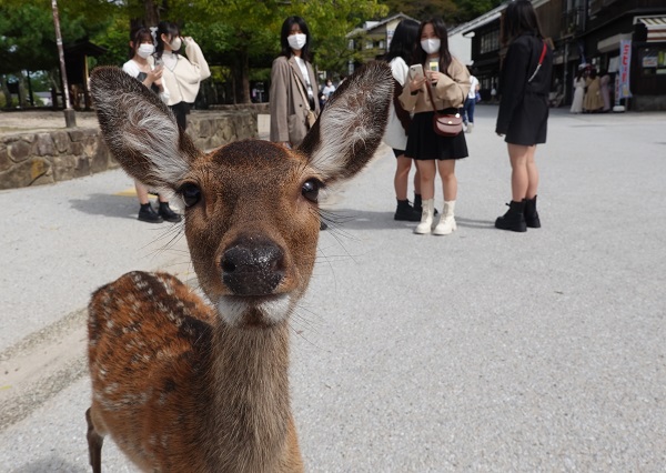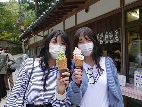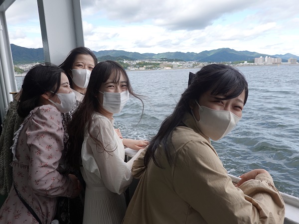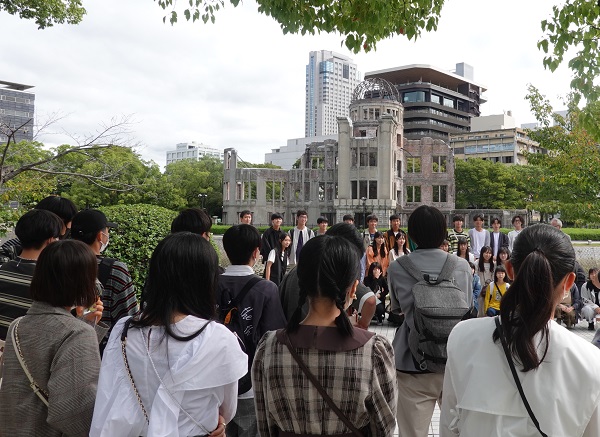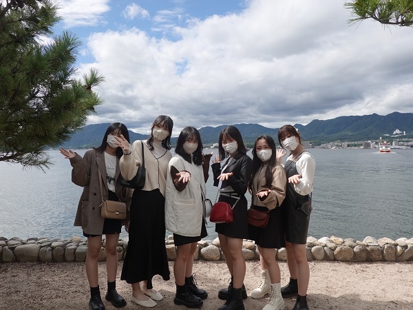 初日は広島平和公園からスタートしてガイドさんの案内や資料館で平和学習。毎回感じることですが、隅々まで清掃が行き届いた公園敷地に足を踏み入れると、広島の皆さんの平和への気持ちが伝わってきます。午後からは少しバスで移動して、フェリーで宮島に渡りました。穏やかな天気に恵まれ、浜辺で仲間たちと写真や動画を撮ったり、厳島神社の帰路にある土産物街での食べ歩きを楽しむなど、生徒たちは皆、思い思いに羽を伸ばして時間を過ごしていました。