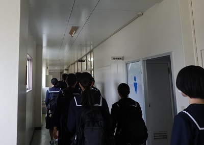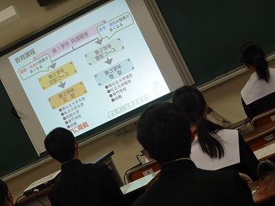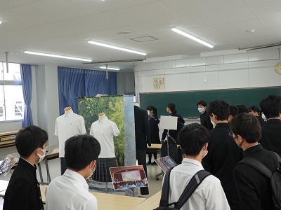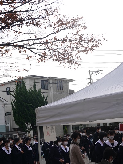 11月13日(日)中学生を対象とした体験入学会を実施しました。当日は11過ぎから小雨が降る天候となりましたが、午前中全体では、事前に各中学校を通して予約した1,000名を超える皆さんに来校いただきました。感染症予防対策として、各班30名から40名程度に分散しての40分程度の動画による学校説明と校内ツアーを行い、その後は部活動を自由に見学できることとしました。中学生の皆さんにとっては、本校の生徒たちの活動の様子を直接感じ取ってもらう機会になったと思います。