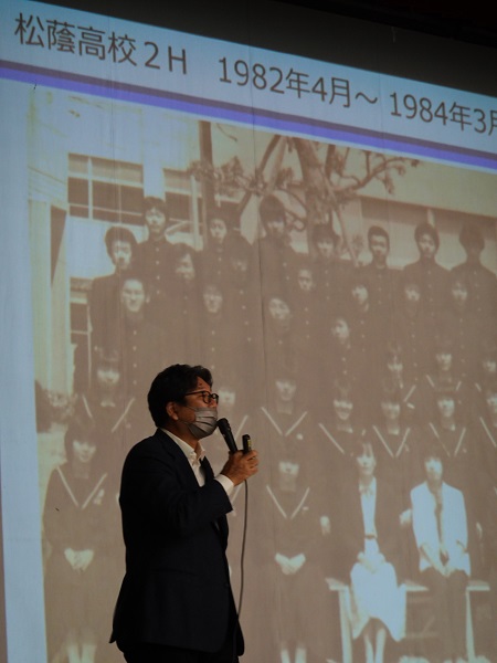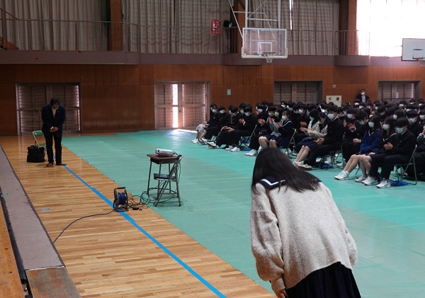 11月14日(月)本校体育館にて、1,2年生を対象に「松蔭アカデミー」を開催しました。今年度は、松蔭高校36回生(S59卒)の横田浩一様をお招きし、「SDGsとキャリア教育」と題して、後輩たちに向けて講演を行っていただきました。