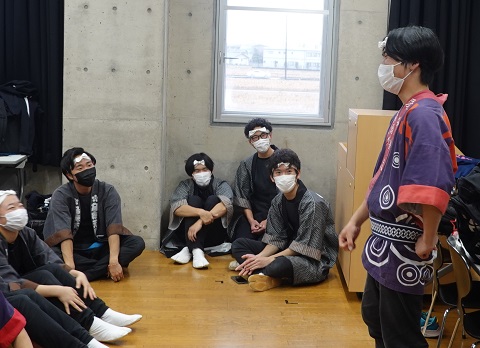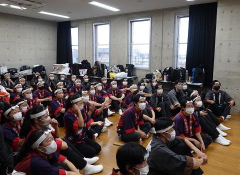 11月23日(祝)、本校和太鼓部が、知立市文化会館(パティオ池鯉鮒)で行われた令和4年度高文連郷土芸能専門部愛知県大会に出場し、全国大会(2023かごしま総文祭)出場をめざして素晴らしいパホーマンスを見せてくれました。画像は本番直前に私が楽屋へ激励にお邪魔させていただいた様子です。リラックスした表情を見せてくれましたが、内心は緊張感一杯だったのではなかったのでしょうか?(大会規定で演奏中の画像はネット等への掲載を控えることになっていますので悪しからず)