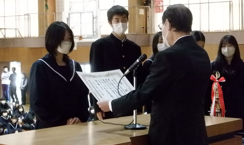 今回の壮行会の機会に、全国出場を決めたこの中部大会の受納式(表彰披露)も行いました。