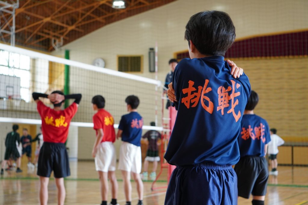 男子バレーボール部は、プレーヤー38名(3年生9名、2年生12名、1年生17名)とマネージャー6名で活動しています。令和4年度には地区で入賞(3位・6位)し、総体・愛知県選手権ともに県大会へ出場しました。今年度はチームの目標であった県大会ベスト16という目標も果たすことができました。現在はそれ以上の結果が出るように毎日練習をしています。